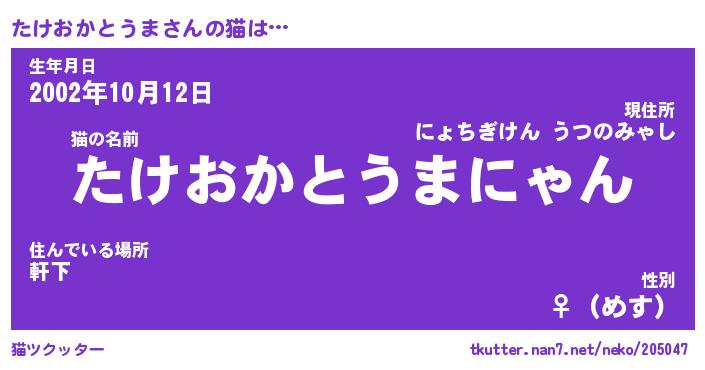 | 2回繰り返すあだ名 | 『たけたけ』『たたけけ』『うねうね』 |