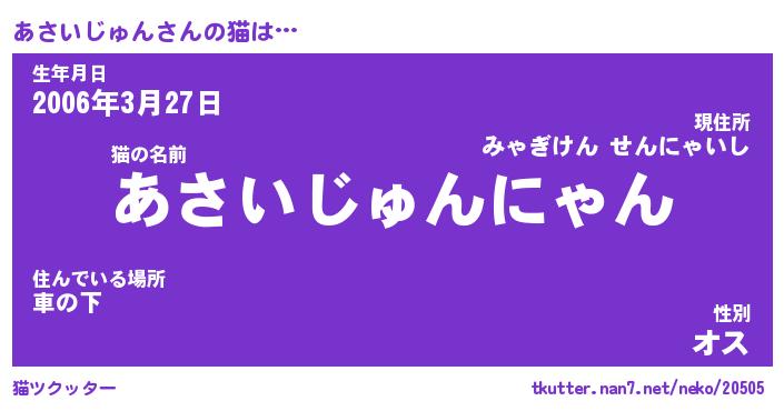 | 男性向けラノベタイトル風あだ名 | 『あさいじゅんの憂鬱』 |