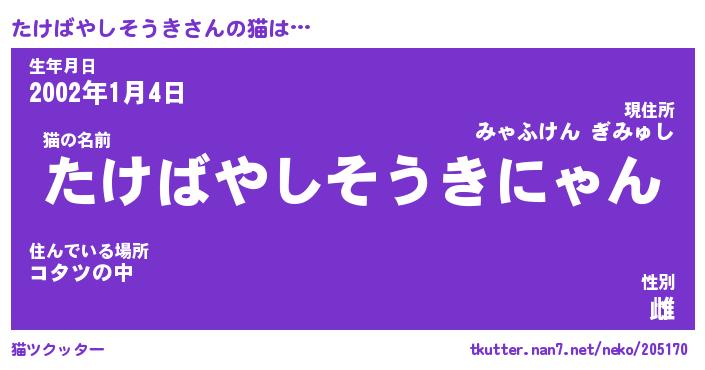 | ポケモン風あだ名 | 『タケチュウ』『タケバダネ』 |