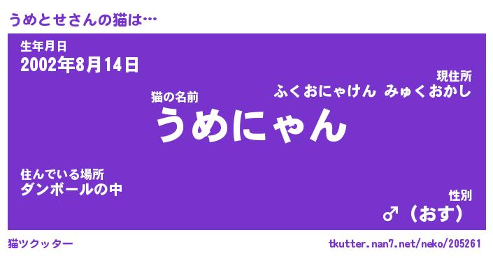 | ポケモン風あだ名 | 『ウメチュウ』『ウメトダネ』 |