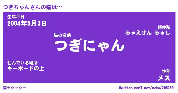 | ポケモン風あだ名 | 『ツギチュウ』『ツギチダネ』 |