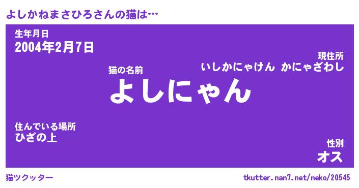 | ポケモン風あだ名 | 『ヨシチュウ』『ヨシカダネ』 |