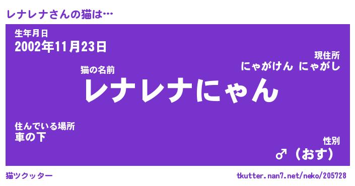 | 意味不明あだ名 | 『ペロリンレナレナ』『永久保存レナレナ』 |