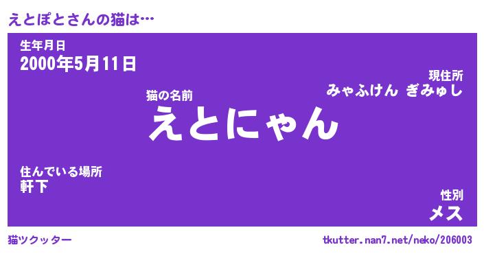 | 意味不明あだ名 | 『ペロリンえとぽと』『永久保存えとぽと』 |