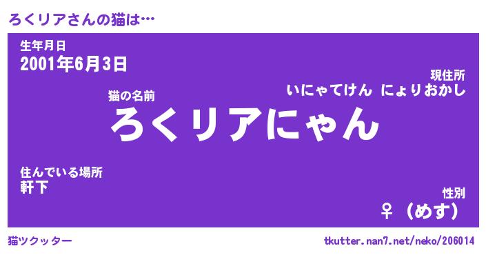 | 生年月日? …「くろねこ」 | 8月01日 10:16 |