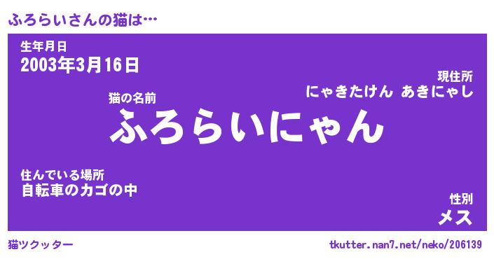 | 意味不明あだ名 | 『ペロリンふろらい』『永久保存ふろらい』 |