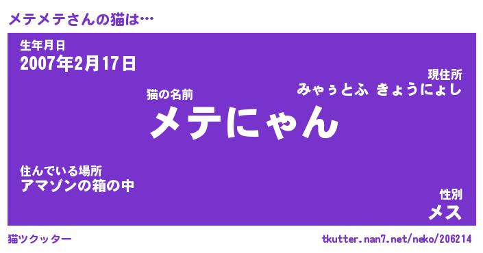 | ポケモン風あだ名 | 『メテチュウ』『メテメダネ』 |