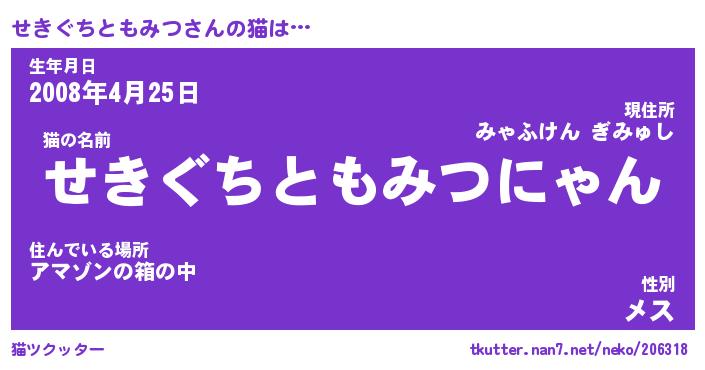 | 男性向けラノベタイトル風あだ名 | 『せきぐちともみつの憂鬱』 |
