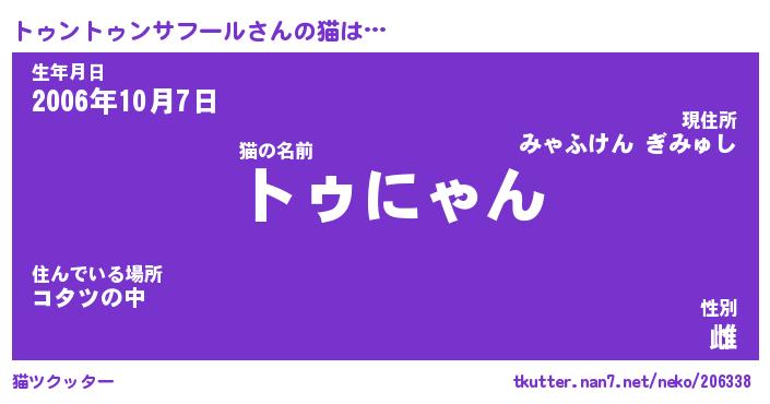| 2回繰り返すあだ名 | 『トゥトゥ』『トトゥゥ』『ぐえぐえ』 |