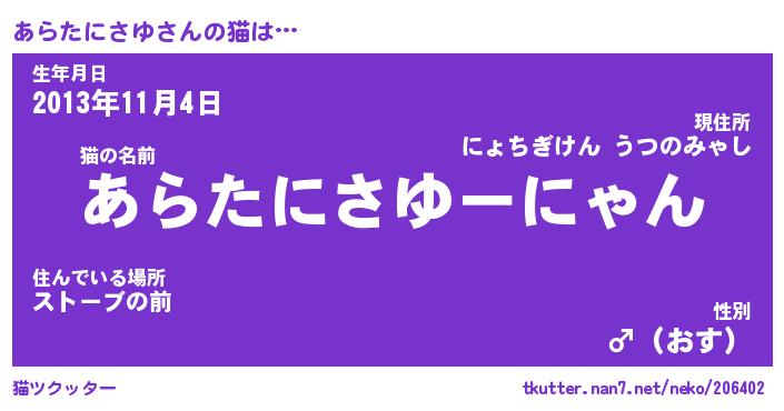 生年月日? …「くろねこ」 | 8月01日 10:16 |