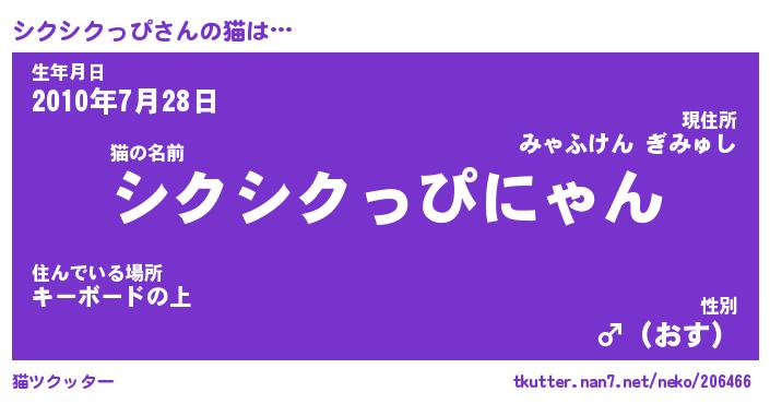 | ヒーロー風カッコイイあだ名 | 『スーパーシクシクッピ』『黄金騎士シク』 |