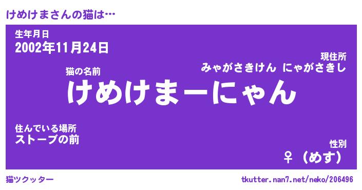 | ヘコむあだ名 | 『けめっふぃ~』『牛乳』『けめ太郎』 |