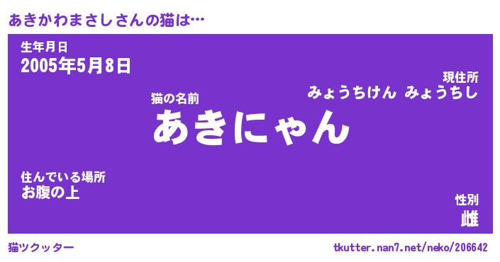 | ツイッター | あきかわまさしさんのツイッターID『kikurage_star』 |