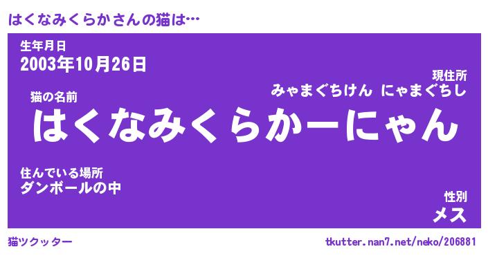 生年月日? …「くろねこ」 | 8月01日 10:16 |