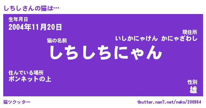 | ポケモン風あだ名 | 『シチチュウ』『シチシダネ』 |