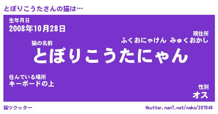 生年月日? …「くろねこ」 | 8月01日 10:16 |