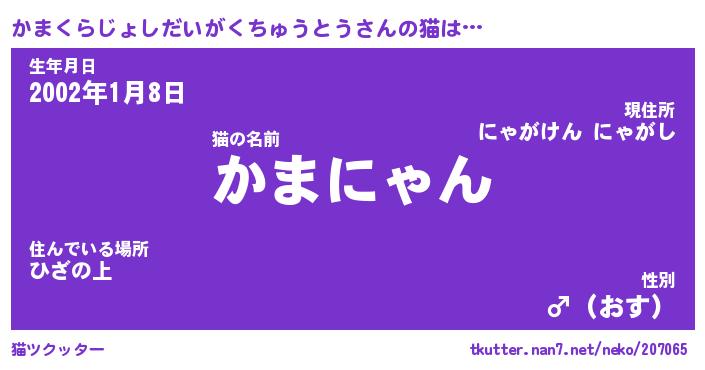 | 男性向けラノベタイトル風あだ名 | 『かまくらじょしだいがくちゅうとうの憂鬱』 |