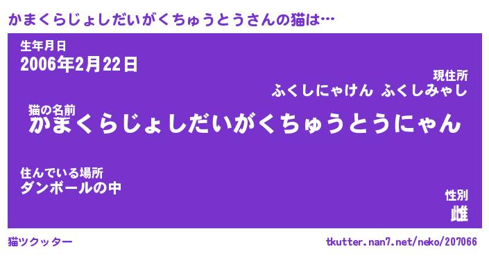 ツイッター | かまくらじょしだいがくちゅうとうさんのツイッターID『kikurage_nyan』 |