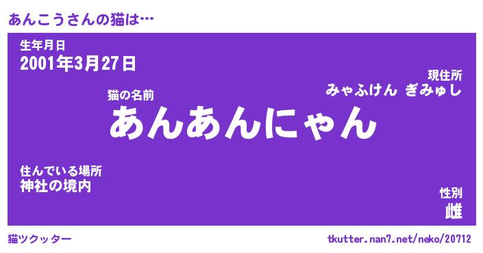 | 生年月日? …「くろねこ」 | 8月01日 10:16 |