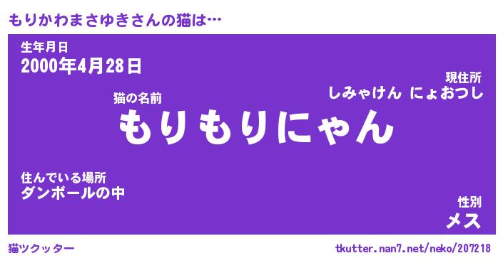 | ヘコむあだ名 | 『もりもー』『つくし』『もりっちょ』 |