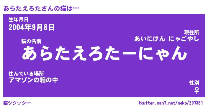 | 生年月日? …「くろねこ」 | 8月01日 10:16 |