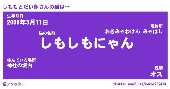 | ポケモン風あだ名 | 『シモチュウ』『シモモダネ』 |