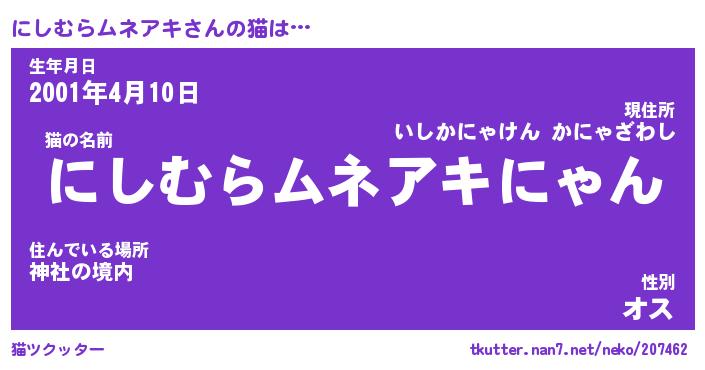 | ポケモン風あだ名 | 『ニシチュウ』『ニシムダネ』 |