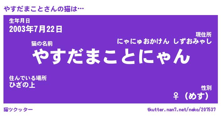 | 肩書あだ名 | 『やすだまこと御曹司』 |