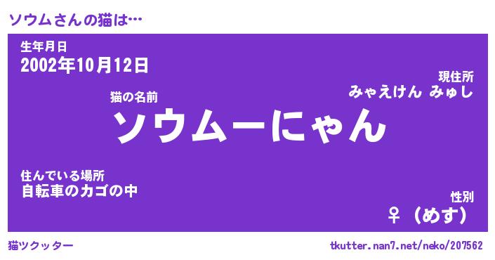 | ポケモン風あだ名 | 『ソウチュウ』『ソウムダネ』 |