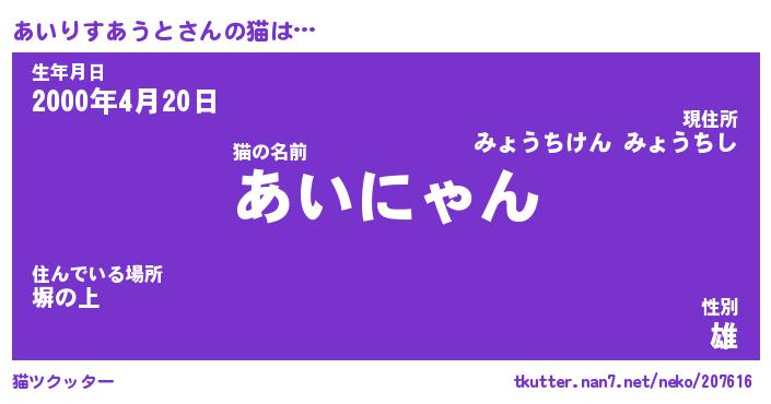 | 生年月日? …「くろねこ」 | 8月01日 10:16 |