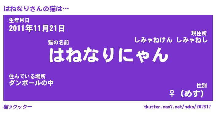 | 2回繰り返すあだ名 | 『はねはね』『ははねね』『うねうね』 |