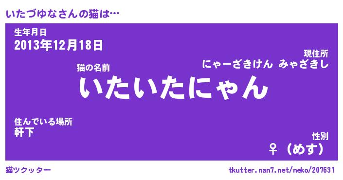 | ファンタジー風あだ名 | 『イタフェル』『エターナルイタヅユナー』 |