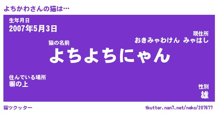 | 意味不明あだ名 | 『ペロリンよちかわ』『永久保存よちかわ』 |
