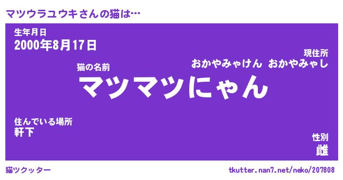 | 2回繰り返すあだ名 | 『マツマツ』『ママツツ』『ぷくぷく』 |