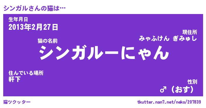 | 意味不明あだ名 | 『ペロリンシンガル』『永久保存シンガル』 |
