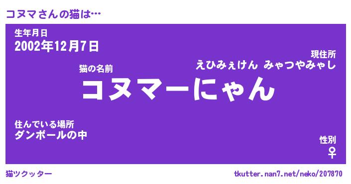| ファンタジー風あだ名 | 『コヌフェル』『エターナルコヌマー』 |