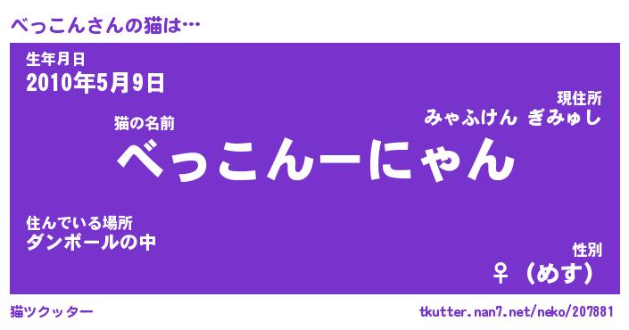 | 意味不明あだ名 | 『ペロリンべっこん』『永久保存べっこん』 |