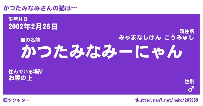 | ヒーロー風カッコイイあだ名 | 『スーパーカツタミナミ』『天弓騎士カツ』 |