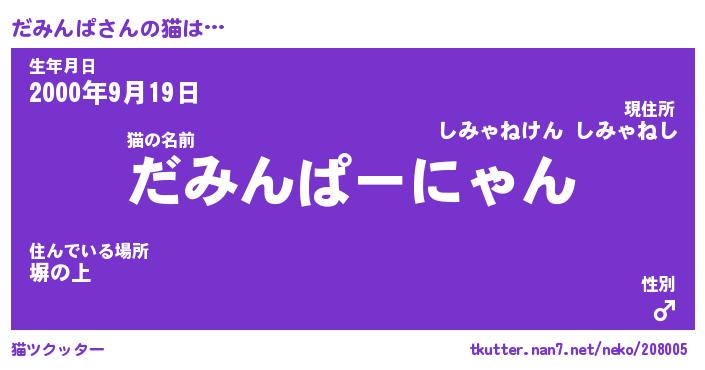 | 意味不明あだ名 | 『ペロリンだみんぱ』『永久保存だみんぱ』 |