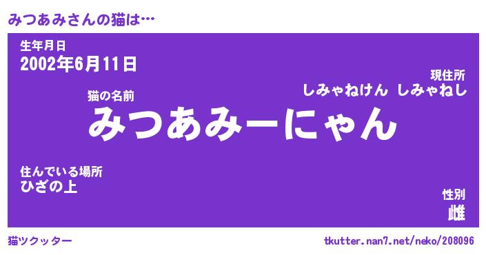 | 意味不明あだ名 | 『ペロリンみつあみ』『永久保存みつあみ』 |