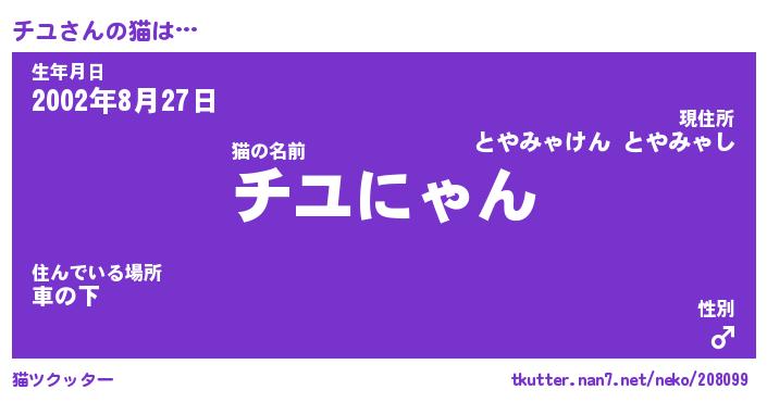 | 意味不明あだ名 | 『ペロリンチユ』『チユフォーエバー』 |