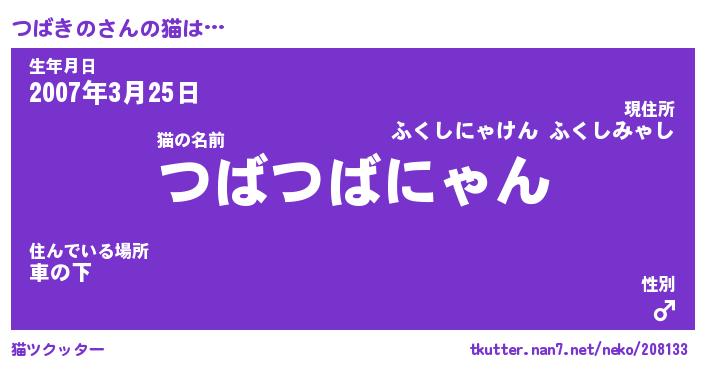 | ヘコむあだ名 | 『つばにー』『なまこ酢』『つばを』 |