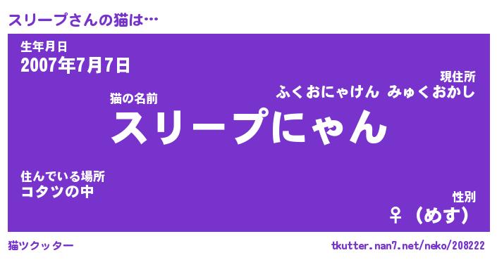 | 意味不明あだ名 | 『ペロリンスリープ』『永久保存スリープ』 |