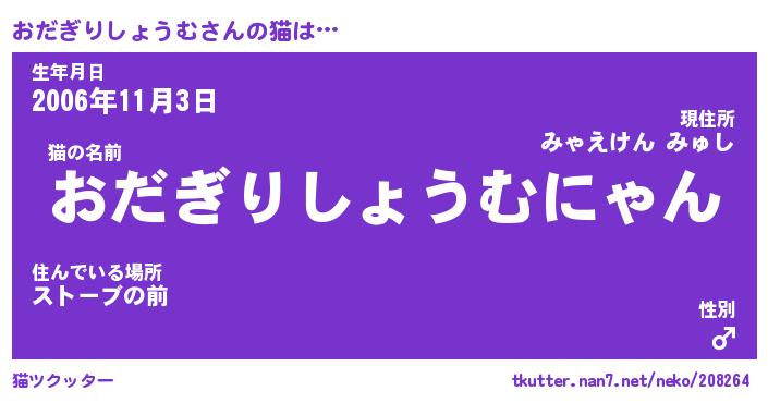 | 男性向けラノベタイトル風あだ名 | 『おだぎりしょうむの憂鬱』 |
