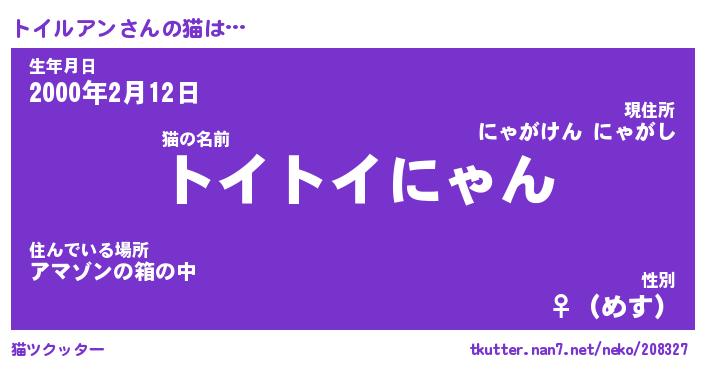 | ポケモン風あだ名 | 『トイチュウ』『トイルダネ』 |