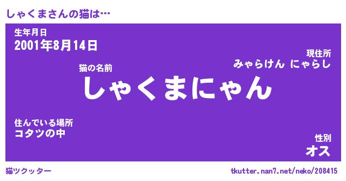 | 意味不明あだ名 | 『ペロリンしゃくま』『永久保存しゃくま』 |