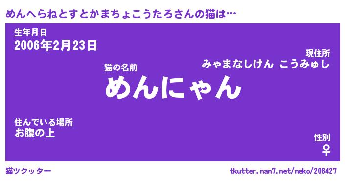 | ポケモン風あだ名 | 『メンチュウ』『メンヘダネ』 |