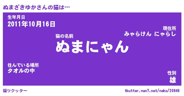 | ピコ太郎風あだ名 | 『ヌコ十郎』『ピヌ二郎』『ヌマ二郎』 |