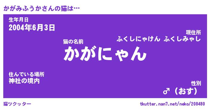 | ヘコむあだ名 | 『かがにゅー』『牛乳』『かがっちょ』 |
