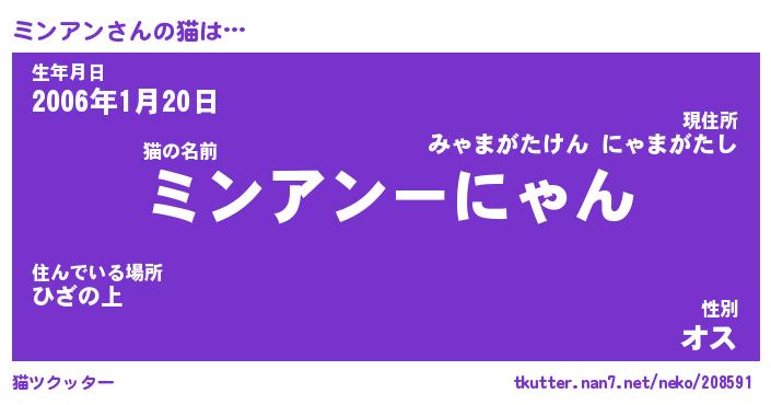 | 意味不明あだ名 | 『ペロリンミンアン』『永久保存ミンアン』 |
